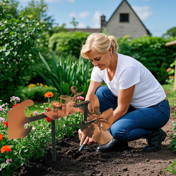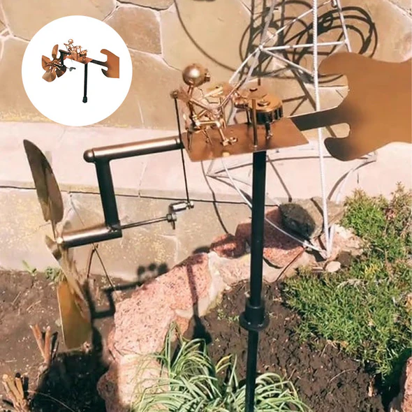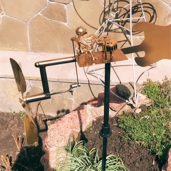 Our Handmade Metal Drummer Windmill isĀ fully hand-welded and crafted with care.Ā As the wind turns the windmill at the back, it drives the drummer to play the drum ā the stronger the wind, the faster the beats. We've also replaced the traditional front-facing arrow with a unique guitar-shaped design, adding a fun musical twist.