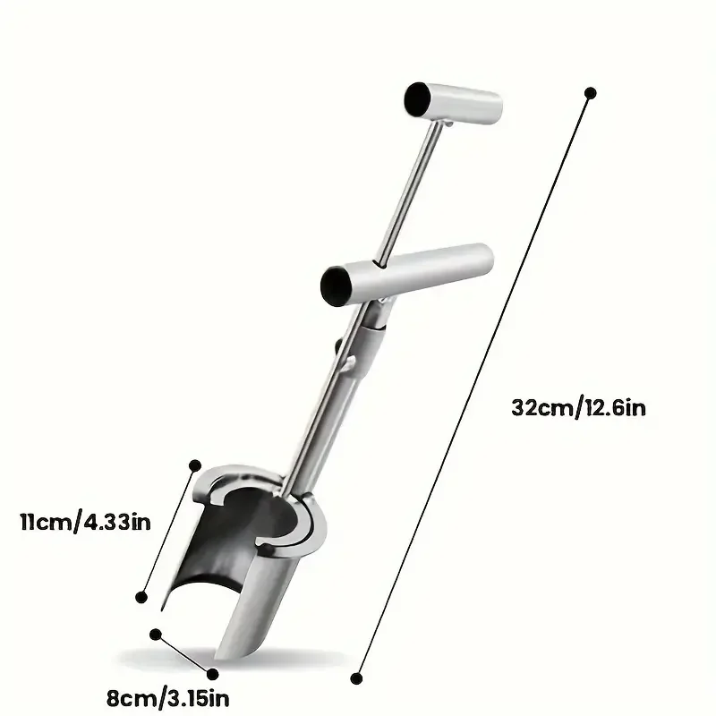 Make your gardening easier with our thickened metal plant transporter. This durable tool made of high-quality stainless steel has a T-handle and a digging drum for easy planting and can be used for various gardening tasks.
