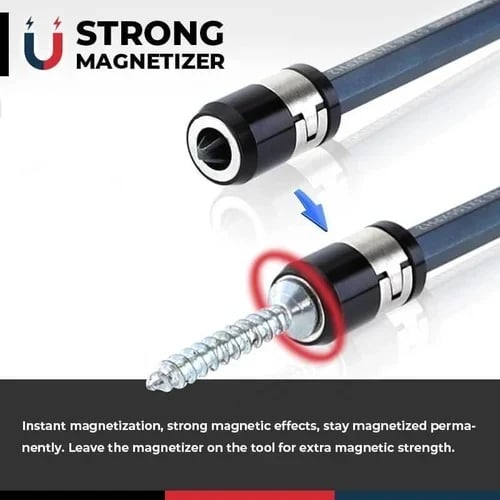 Instant magnetization, strong magnetic effects, stay magnetized permanently. Leave the magnetizer on the tool for extra magnetic strength.